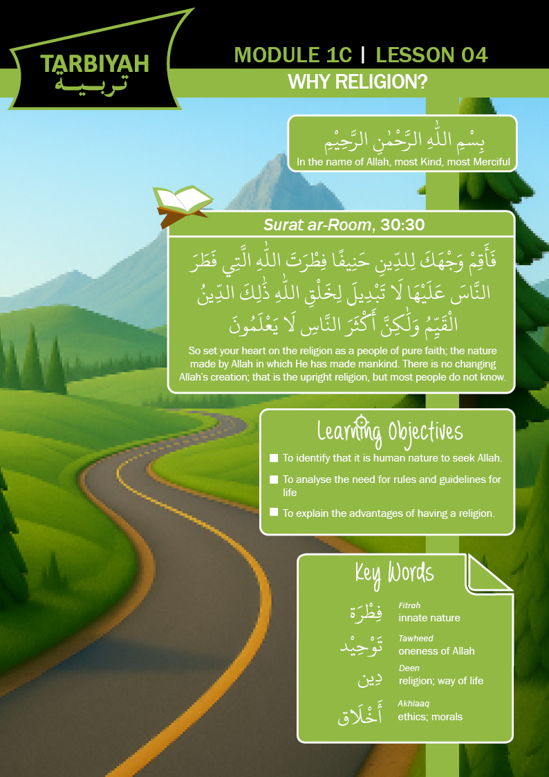 Lessons Show Filters Tarbiyah overview Search Lessons Filter by Age Bands Filter by Modules 1a04- I Begin In Allah’s Name 1b04- Iblis The Proud One 1c04 – The Need Of Following A Religion 1c04 – Why Religion? – 2nd Edition 1d04 – Communicating With Allah Through Salah 1e04 – Yaqin 1f04 – Ma’rifah Of Allah 2a04- Nabi Ibrahim And The Ka’bah 2b04- Qur’an Is My Special Book 2c04 – Anbiya 2c04 – Divine Communication – 2nd Edition 2d04 – The Prophets And Divine Messages 2e04 – The Banu Isra’il 2f04 – Nabi Yusuf Interprets Dreams 3a04- I Can Be Kind Like Rasulullah (s)