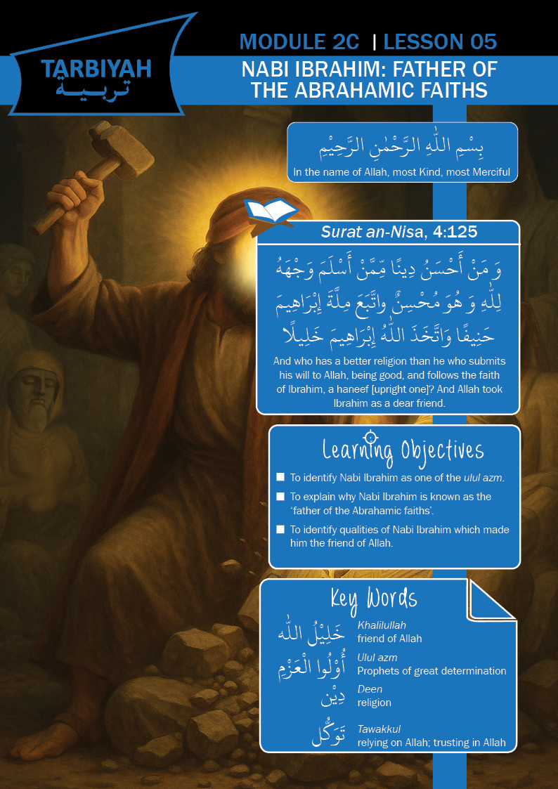 Lessons Show Filters Tarbiyah overview Search Lessons Filter by Age Bands Filter by Modules 1a05- I Am A Muslim, Islam Is My Deen- Kalimah 1b05- Du’a- I Ask Allah For Help 1c05 – Islam – 2nd Edition 1c05 – Islam: The Path To Perfection 1d05 – Salah Is The Mi’raj Of A Mu’min 1e05 – Preparing For Salah 1f05 – Tawhid And Shirk 2a05- Nabi Musa’s Birth And Childhood 2b05- Ulu Al- Azm Ambiya 2c05 – Nabi Ibrahim: Father Of The Abrahamic Faiths 2c05 – Nabi Ibrahim: Father Of The Abrahamic Faiths – Second Edition 2d05 – The Prophets Are The Best Leadership Role Models 2e05 – Nabi Musa Meets Khidr 2f05 – Nabi Yusuf: Minister Of Egypt 3a05- Sayyidah Fatimah (s)